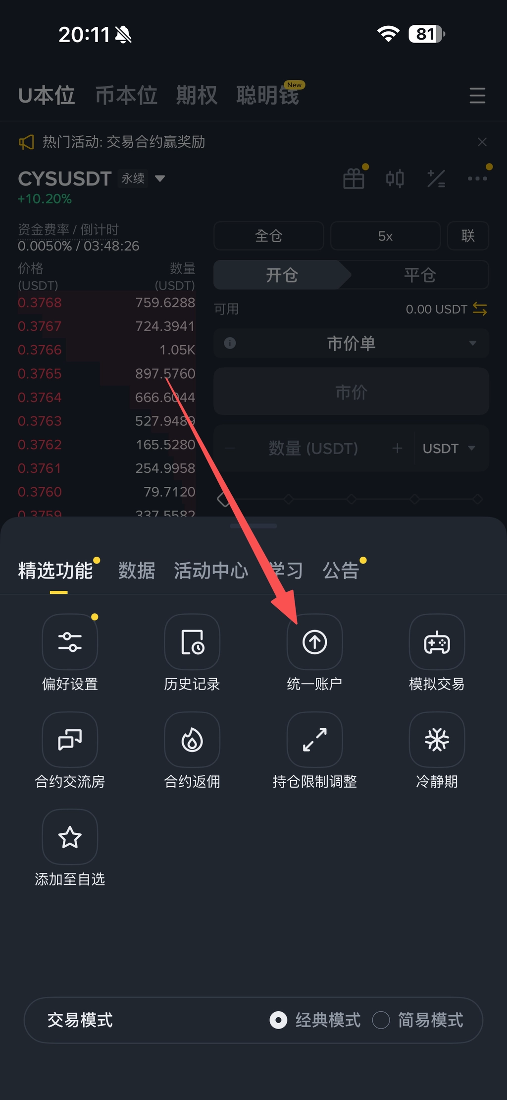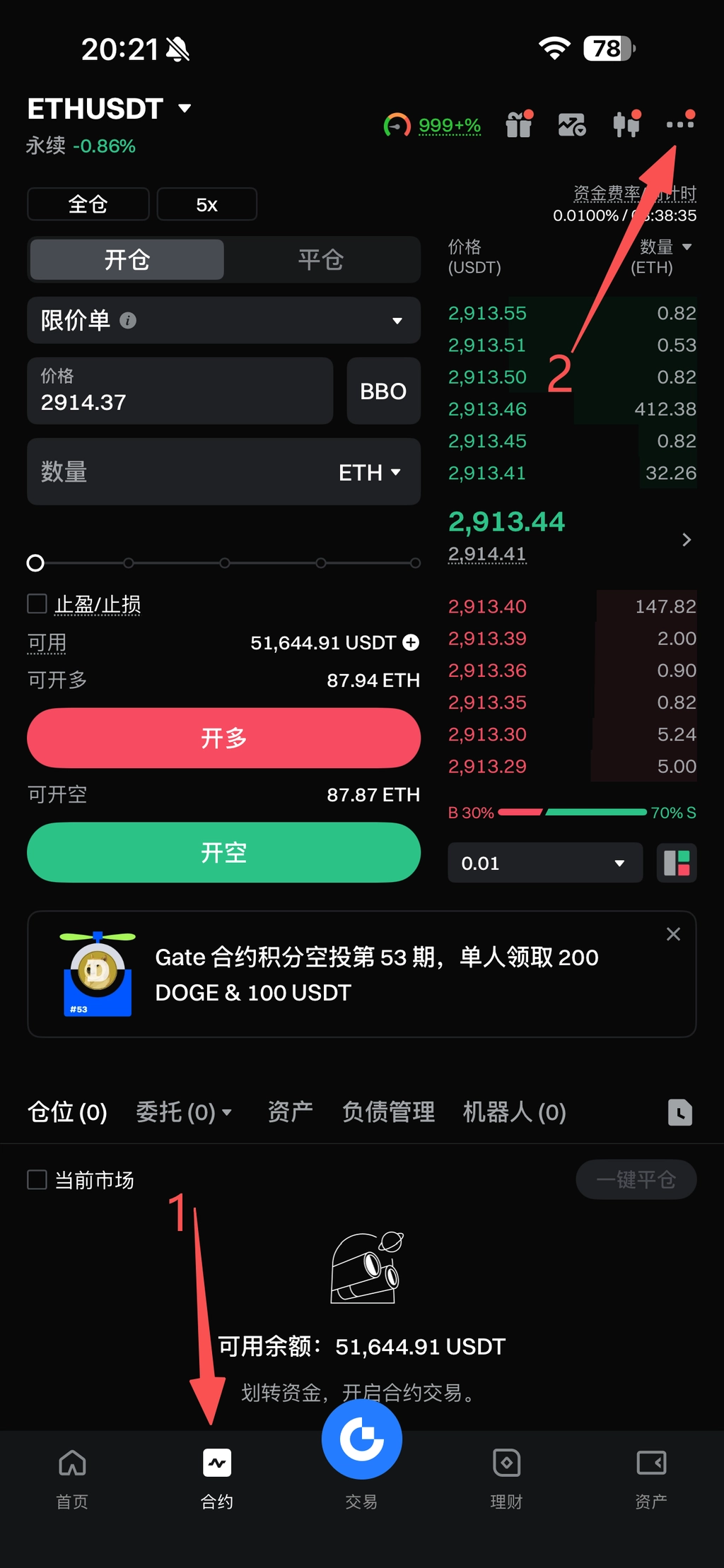 💡 先去开通合约账户