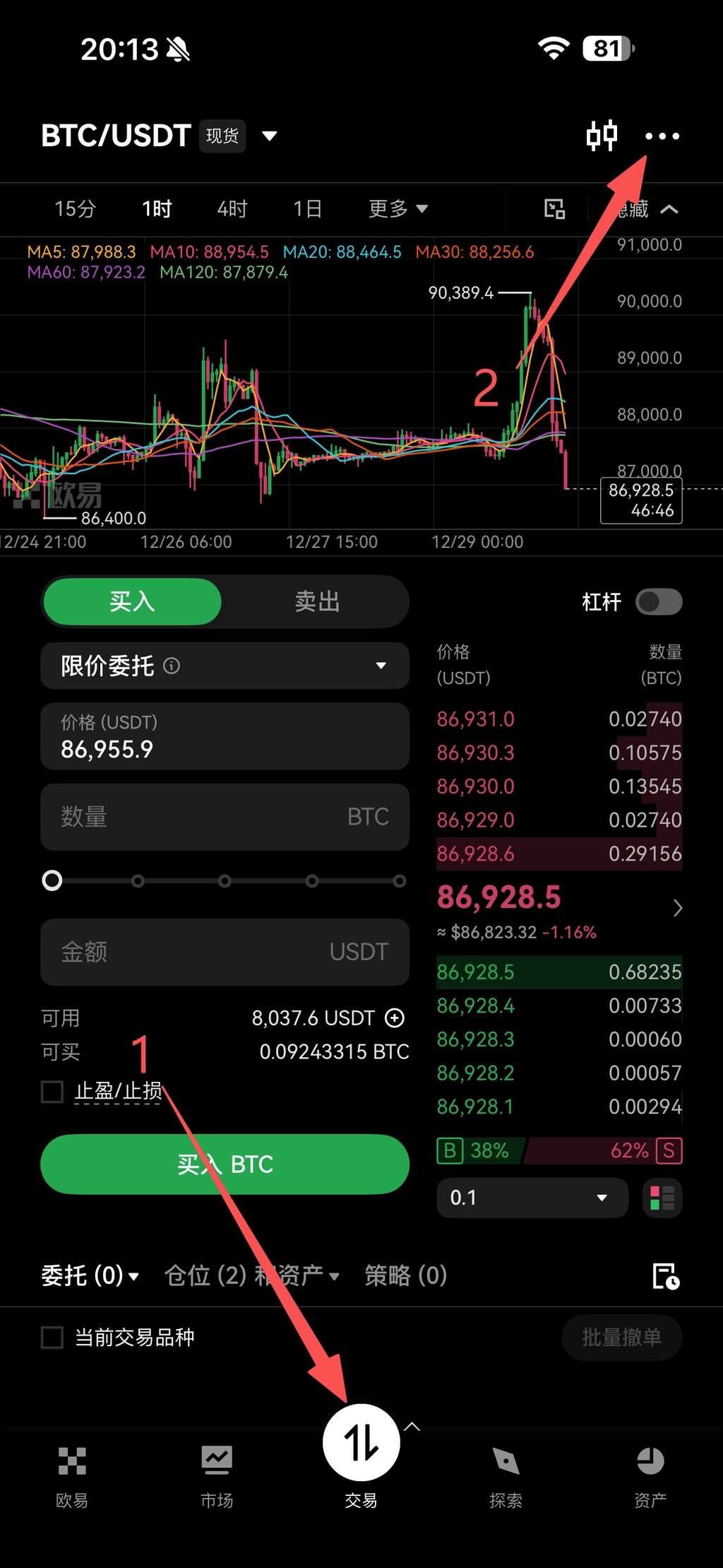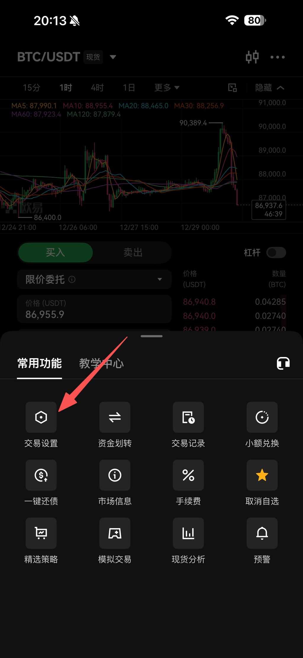 事前准备:划转一部分资金到“全仓杠杆账户”先开通杠杆账户!!!