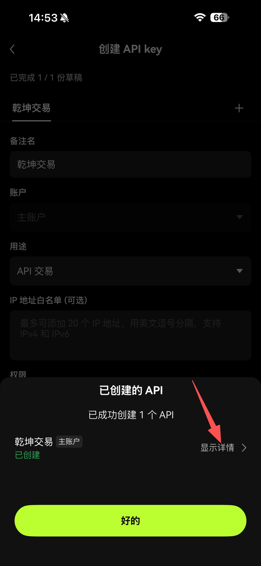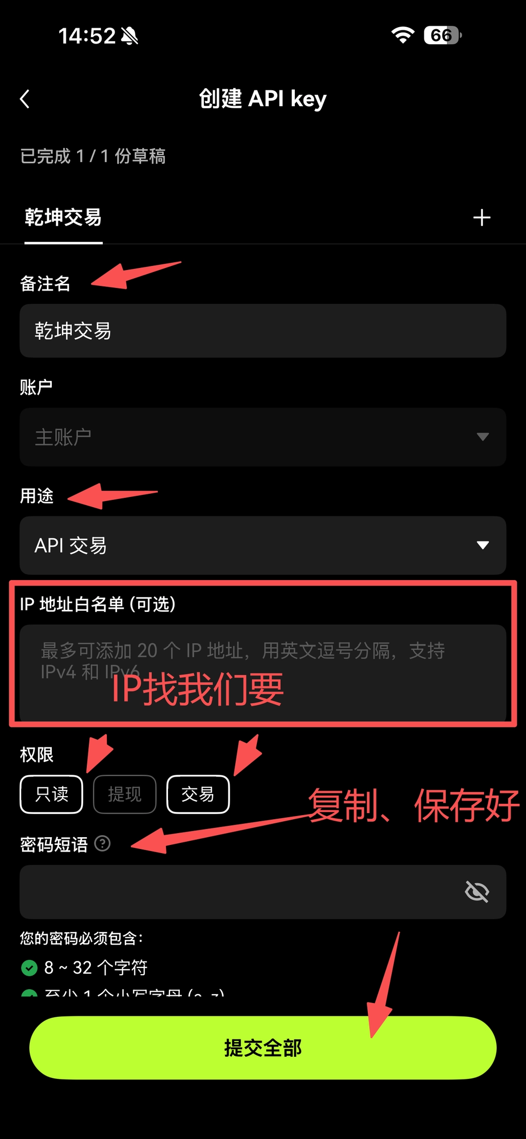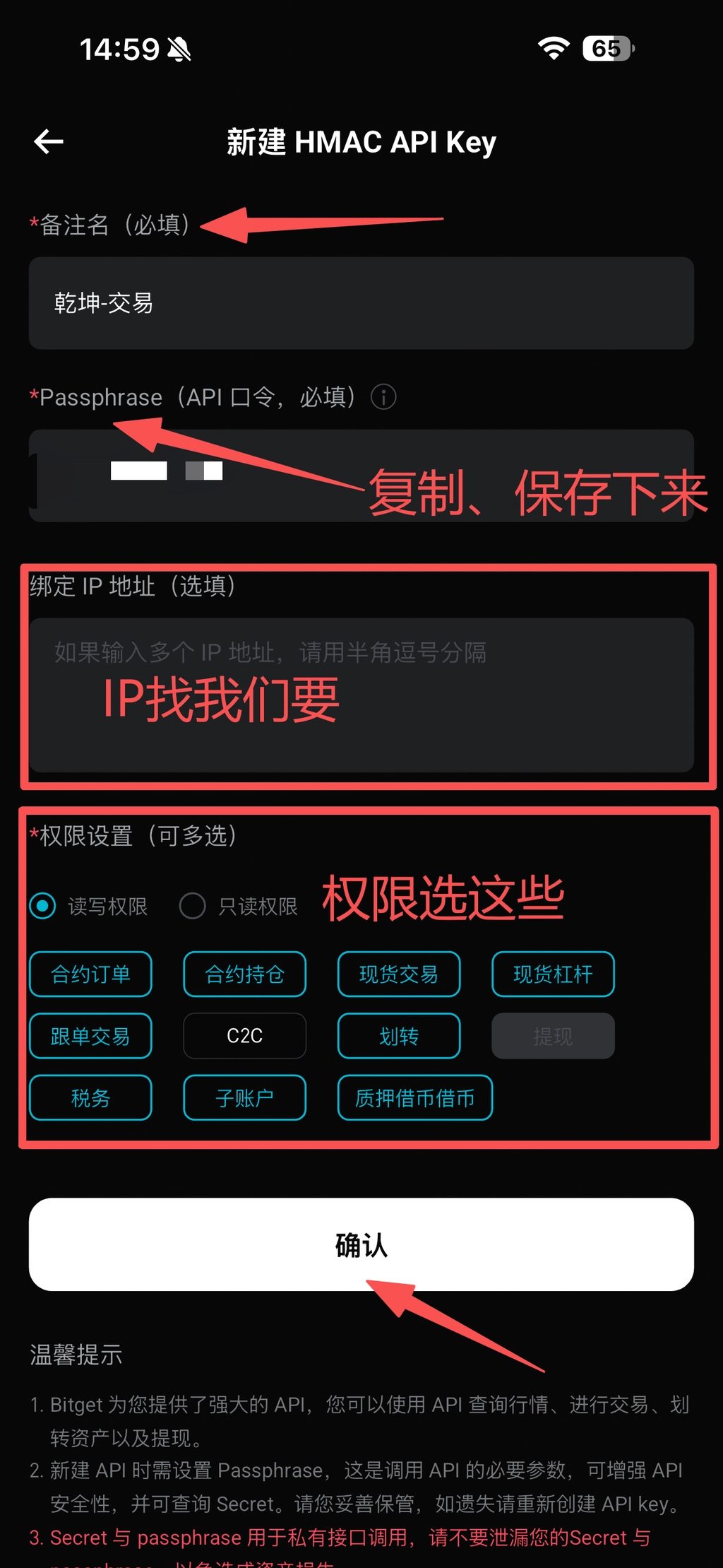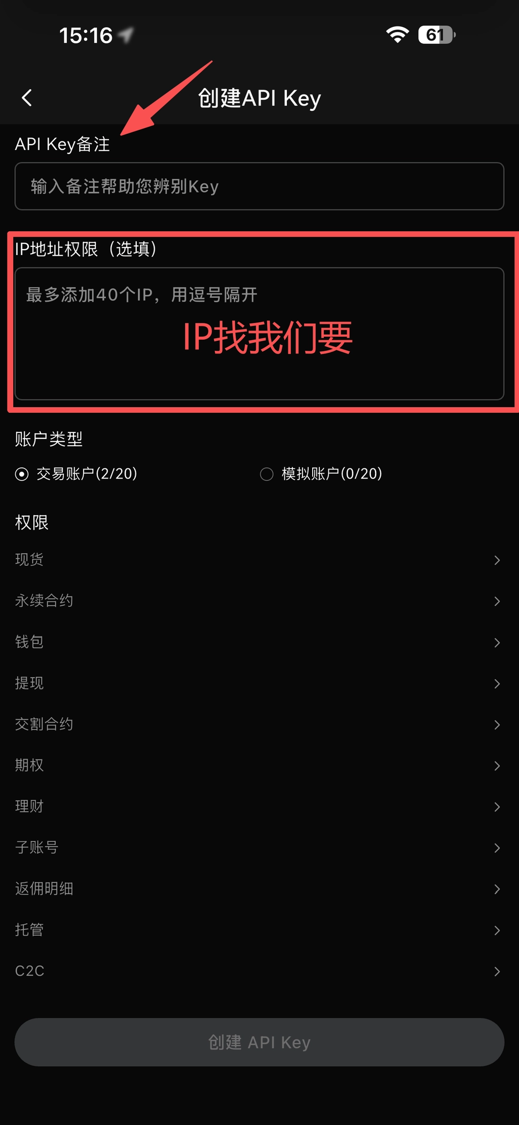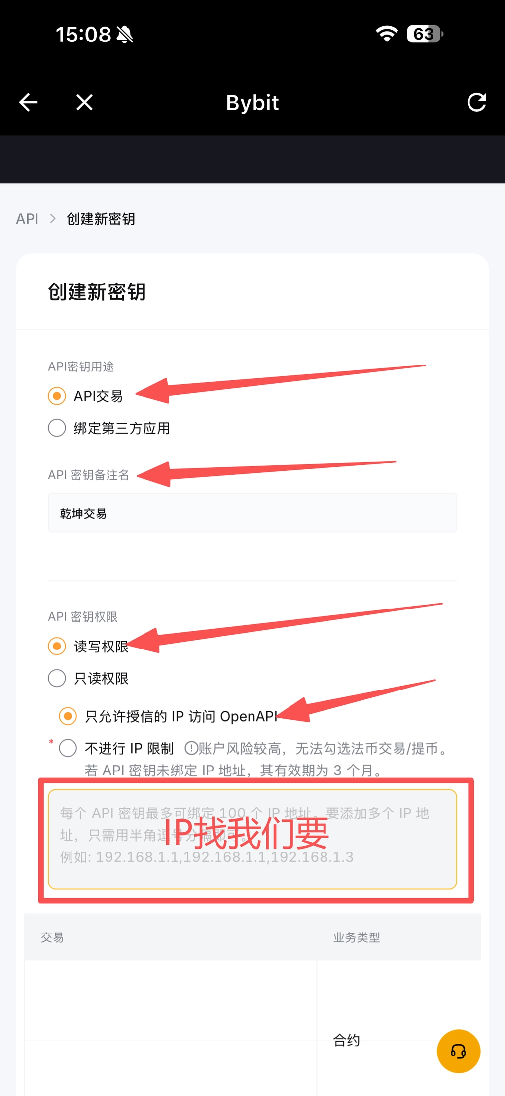 💡 在填写IP白名单时需添我们提供的IP:绑定IP需找套利团队获取